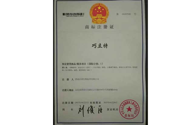 “巧立特”商標證書